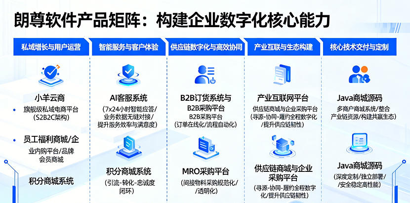 在数字化浪潮重塑商业格局的今天,企业面临着从内部管理到外部协同、从私域运营到产业互联的全方位挑战。朗尊软件,作为领先的企业数字化解决方案提供商,致力于以深厚的技术积累与行业洞察,为您提供覆盖全商业场景的一站式SaaS产品矩阵,助力企业构建自主可控、高效增长的数字未来。